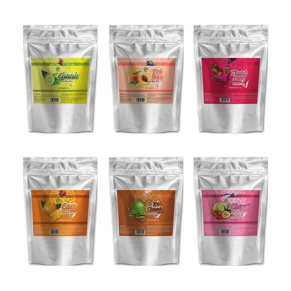 - Thành phần: Bột trái cây chiết xuất từ trái cây tươi, tinh chất trà đen (đối với dòng trà) đường, acic citric, hương trái cây giống tự nhiên.